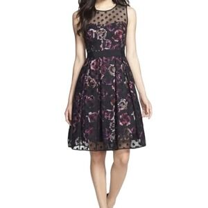 Eliza J Sleeveless Chiffon Fit & Flare Floral Dot Dress Womens Size 8 NWT $198