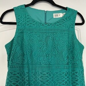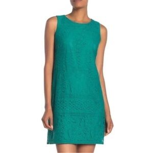 Eliza J Sleeveless Floral Lace Overlay Mini Shift Dress Cocktail Green Sz 2