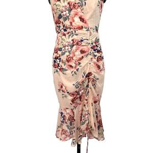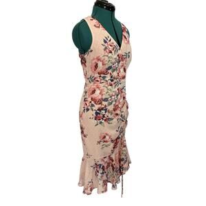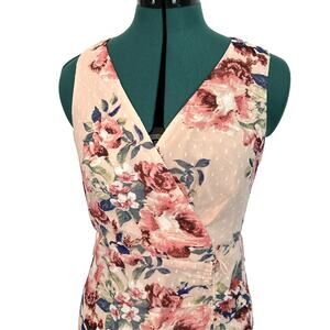 Eliza J Sleeveless Floral Ruched Chiffon Faux Wrap Dress in Blush Size 4 NO BELT