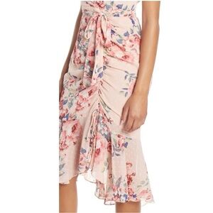 Eliza J Sleeveless Flutter Hem Ruched Textured Floral Midi Dress- Size 4