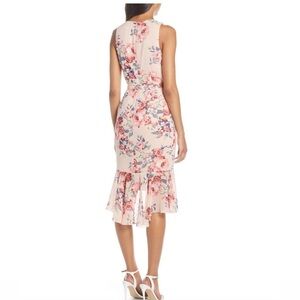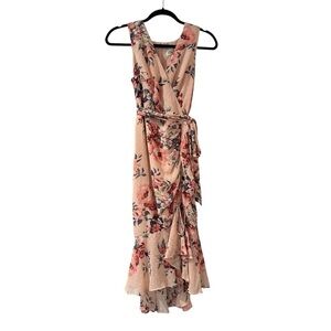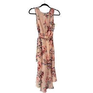 ✨ New without tags (plastic part of tag still connected)! Eliza J Sleeveless Flutter Hem Textured Floral Dress- Crossover V-neck, Faux-wrap front silhouette, Removable side tie at waistband, Sleeveless, Asymmetric front shirring at skirt, High/low flutter hem, Back zip closure, Allover floral print.