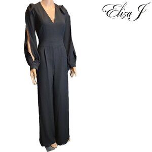 Eliza J Slit Sleeve Wide Leg Crepe Jumpsuit NWT Black Size 6