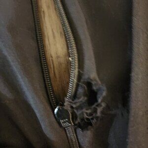 The zipper is stuck and there is a hole in the lining at the point where the zipper is stuck.