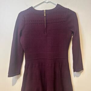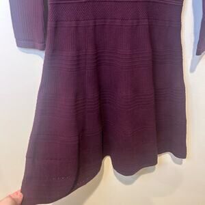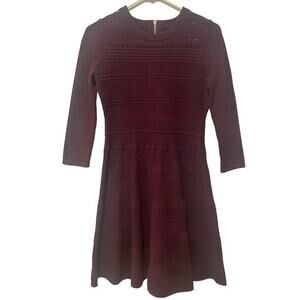 Eliza J Sweater Dress Wine Purple Fit and Flare Textured Knit Eyelet Size S/CH/P