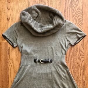 Eliza J. Taupe Brown Belted Cowl Collar Sweater Dress Fit & Flare Women’s Size S