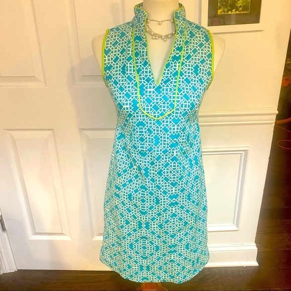 Eliza J Teal & Lime Geometric Pattern Shift Dress