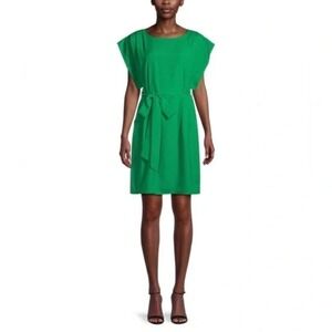 Eliza J. Trapeze‎ Dress Green Belt Pockets Office Wedding size 8