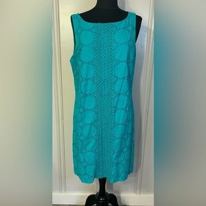 Eliza J Turquoise Blue Green Eyelet Sheath Dress Size 14
