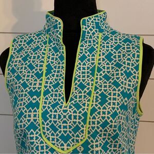 Eliza J Turquoise White Geometric Brunch Sleeveless Shift Dress Womens 4
