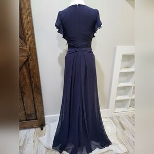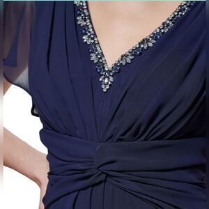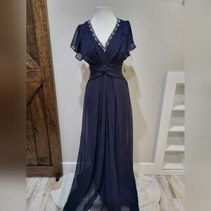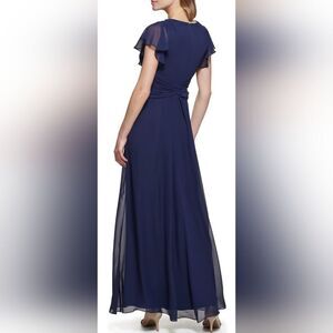 Eliza J Twist Waist Chiffon Flutter Sleeve Beaded Dress NWT sz 12 Navy Blue