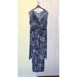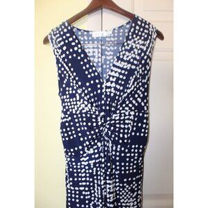 Eliza J Twist front Maxi Dress Blue & White Size 12 Sleeveless Tied waist V neck