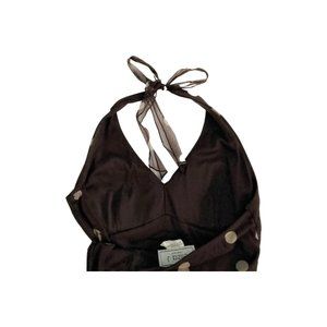 Eliza J Vintage Brown/White Polka Dot Flowy Halter Dress, size 6