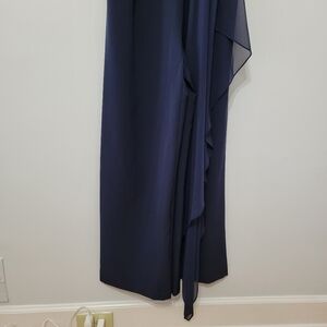 Eliza J Wide Leg Formal Jumpsuit Navy Size 4 Cascading Tie Asymmetric Wedding