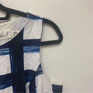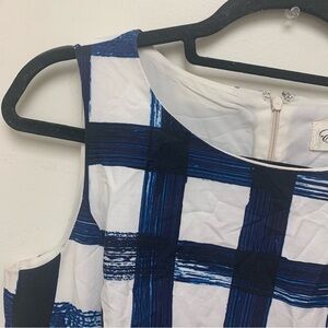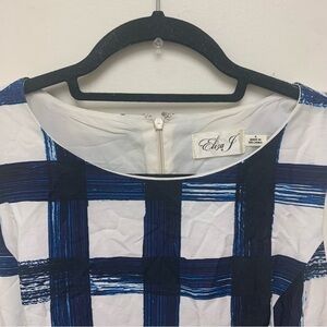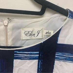 Beautiful Eliza J Windowpane Print Dress. Pretty blue color. Lined. Hidden back zipper. Stitching at bottom of zipper loose.