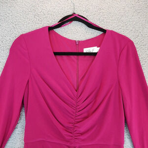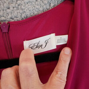 Eliza J Wine/Purple Roushing & Ruffles front Knee Length 3/4 Sleeve Dress Sz 6