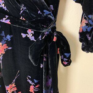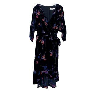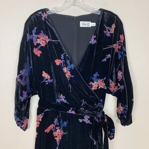 Eliza J Womens 14 Faux Wrap Dress Black Velvet Burnout Dark Floral Hi Low Hem