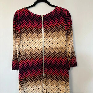 Eliza J Women's 3/4 Sleeve Multicolor Crew Neck Fashion Dress Size 6 GUC