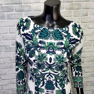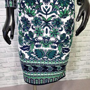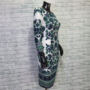 Eliza J Womens 4 Blue Green Paisley 3/4 Sleeve Crew Neck Sheath Dress