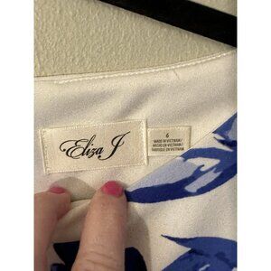Eliza J Women's 6 Blue Floral A-Line Dress Lined Polyester Classic Elegant