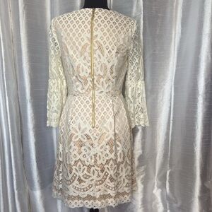 Eliza J Tan Ivory Layered Lacy Back Dip Pleated Mini Dress