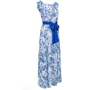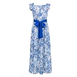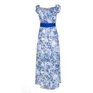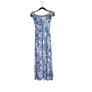 Eliza J Women's Blue & White Floral Print Off The Shoulder Maxi Dress Size 4