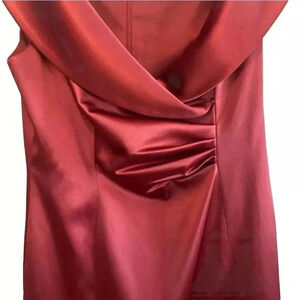 Make a statement with this stunning Eliza J Women's Burgundy Shawl Collar Pleated Midi Sheath Dress. Perfect for any occasion including weddings, parties, formal events, and even workwear. The dress is made from a comfortable blend of Polyester, Spandex, and Polyester Blend and features pleated accents that add an extra touch of sophistication. The dress is a size 10 and is available in a solid Red color, making it perfect for any season, whether it's summer, fall, or spring. The dress is sleeveless and has a collared neckline with a zip closure. The midi dress has a sheath style and is not handmade. It is part of the Women's Clothing category.