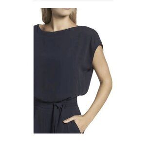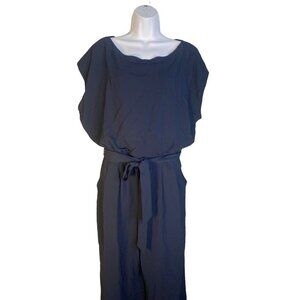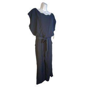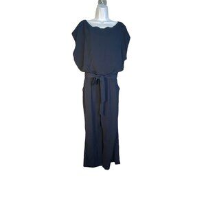 Eliza J Womens Cap Sleeve Wide Leg Jumpsuit in Navy Blue Size 12