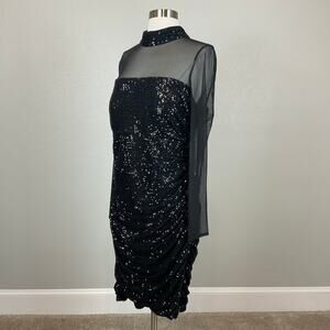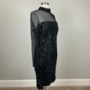 Eliza J Women's Cocktail Dress Size 8 Black Sequined Long Sleeve Midi Sheath