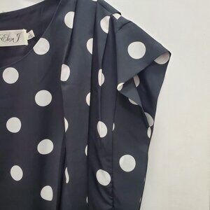 Eliza J Women's Crepe De Chine Black + White Polka Dot Shift Dress Plus Size 14