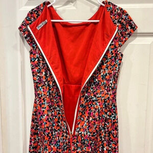 Euc. No flaws. Vibrant colors! Lined. Adorable faux wrap top. Exposed zipper. Polyester.