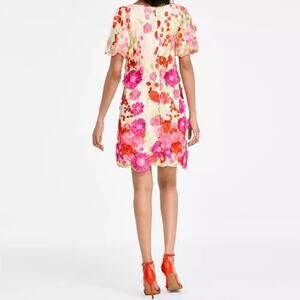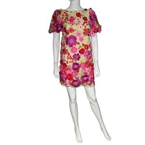 Eliza J Women's Embroidered Floral Puff-sleeve Shift Mini Dress Sz 2 Pink NWT