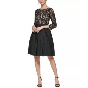 Eliza J Womens Lace Top Boat Neck Cocktail And Party Dress Black Size 6 NWT