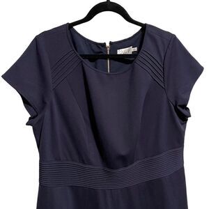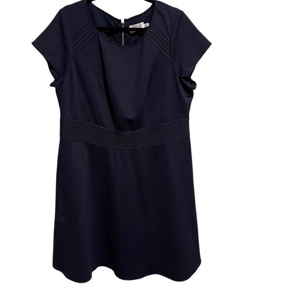 Eliza J- Women’s Navy Blue Fit Flare Stretch Short Sleeve Knee Length Dress, 16W