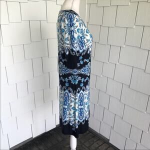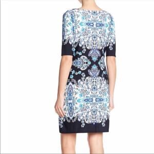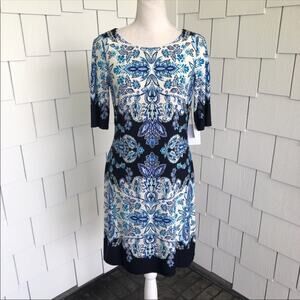 Eliza J Women's Navy/White Elbow Sleeve Lined All Over Print Sheath Dress sz 4