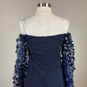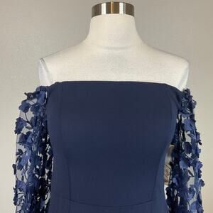 Eliza J Women's Off the Shoulder Long Sleeve Evening Gown Blue Size 6 Formal