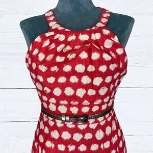 Eliza J Women's Red Polka Dot Sleeveless Fit & Flare Dress with Belt Size 4