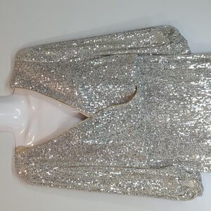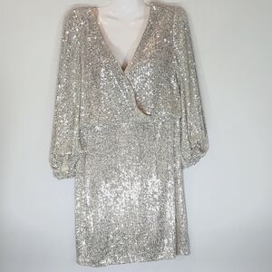 Eliza J Women's Sequined Blouson Shift Dress Silver Cream Size 12 NWT Party Glam
