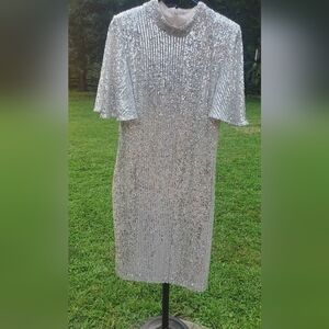 Eliza J Women's Sequined Flutter-Sleeve Mock Neck Cocktail Dress Size 10