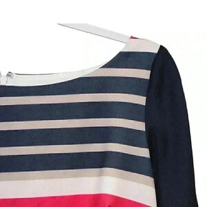 Eliza J Women's Size 12 Multicolor Striped Pencil Sheath Dress 3/4 Sleeve Formal