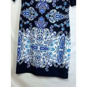 Eliza J Women's Size 4 Blue/White Knee Length Pullover Floral Print Knit Dress