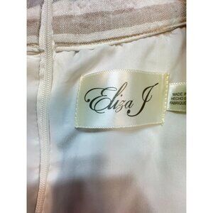 Eliza J Womens Stripe Shift Dress Size 8 Gray Beige Eyelet Trim Linen Blend Boho
