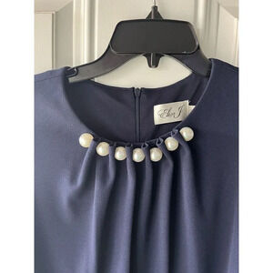 Eliza J Women's Style with Pearl Neckline Knit Sleeveless In NAVY Size 10 New