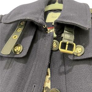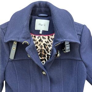 Eliza J Wool-Blend Coat - Navy, Size XS, Belted, Gold Buttons, Leopard Lining