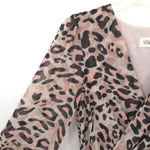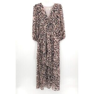 Eliza J animal print faux wrap chiffon hi-low midi dress Size 4 beige