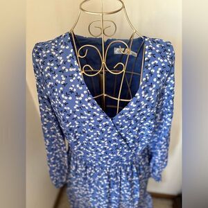Eliza J blue floral surplice long sleeve dress with pockets size 4