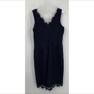 Eliza J navy blue lace shift dress sleeveless back v sheath cocktail zipper 12
