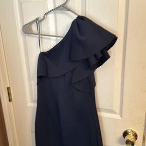Eliza J one shoulder ruffle cocktail dress NWT Size 6. Color navy shell 90% polyester 10% spandex lining 100%polyester closure type zipper