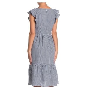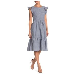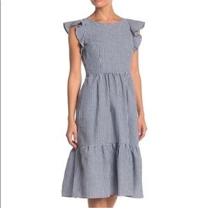 Eliza J seersucker gingham ruffle sleeves dress NWOT