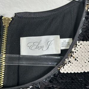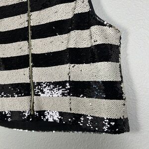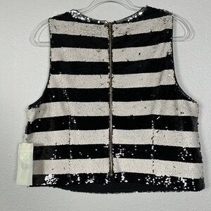 Eliza J size 14 sleeveless sequin crop top black white stripe party festive NEW