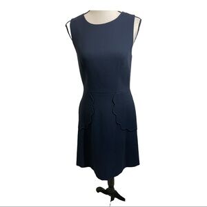 Eliza J sleeveless zipper back scallop trim pockets dress. Blue.size 4. …